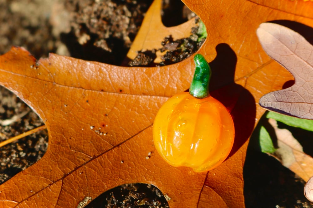 Glass pumpkin, I see you.. just gently laying on that leaf— I see you— you wanna be picked huh? I bet you do. Yeah. For sure. Yep. Nice. Well. I like you pumpkin. I hope someone nice picks you and wears you everyday or at least as often as they can and appreciates you for the nice pumpkin you are. Thank you pumpkin. Thank you for just being you. I love it. It’s amazing. You’re a fall time kinda pumpkin huh? Anyways we could go on but I love and appreciate you pumpkin. I hope you have a nice day: and the person for you, finds you. Good luck. You’ll need it. Halloween is over. Anyways. Peace out.