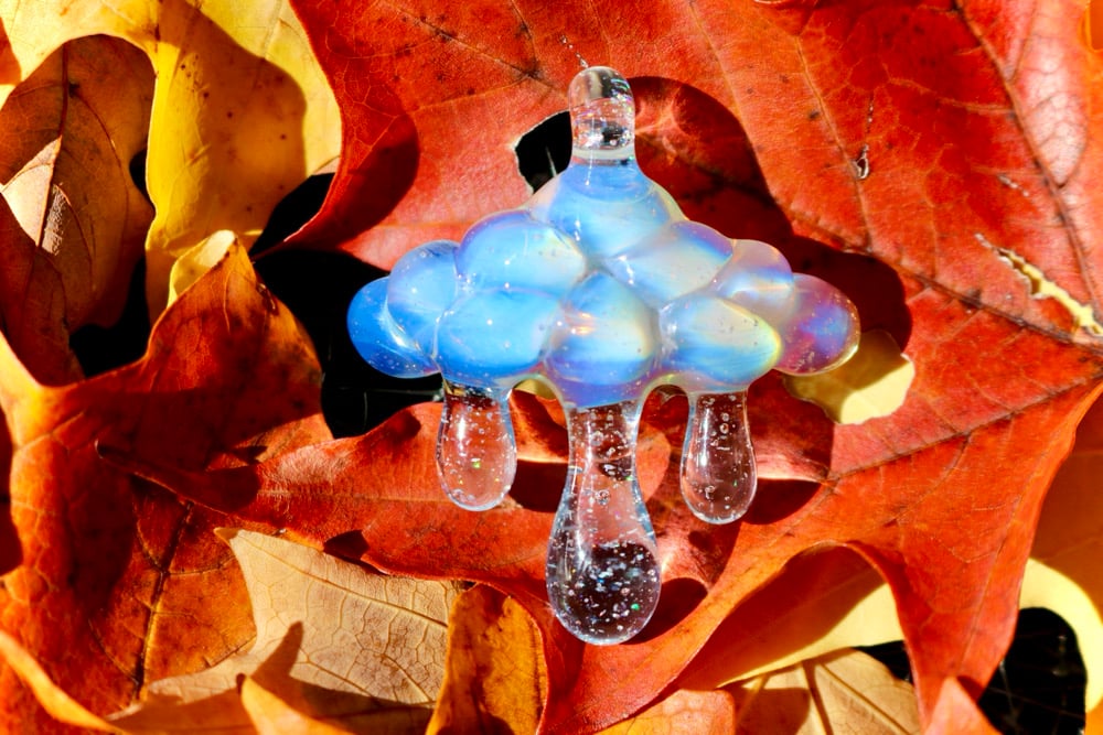 This magic RainCloud features sparkling drips made with clear crushed opal infused glass~