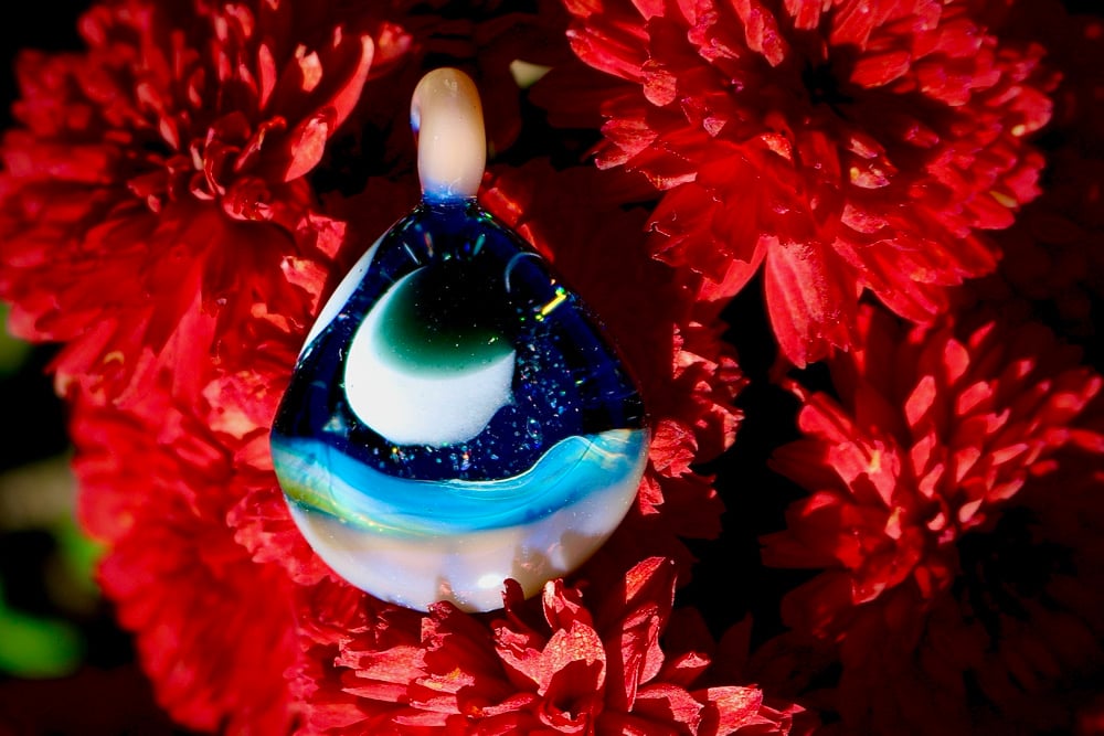 handcrafted by diligent glass ~ inspired by the scenery and moon overlooking Lake Michigan from the shore~